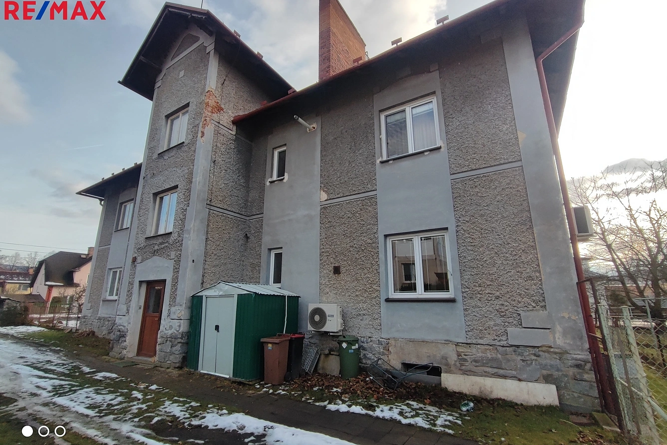 Remax nabízí k prodeji byt 2+1 (67 m2) v podílovém spoluvlastnictví, ve vyvýšeném přízemí dvoupodlažního, cihlového domu v klidné části Jeseníku (ul. Janáčkova). Byt je prostorný, před domem parkování, za domem zahrada s ovocnými stromy.