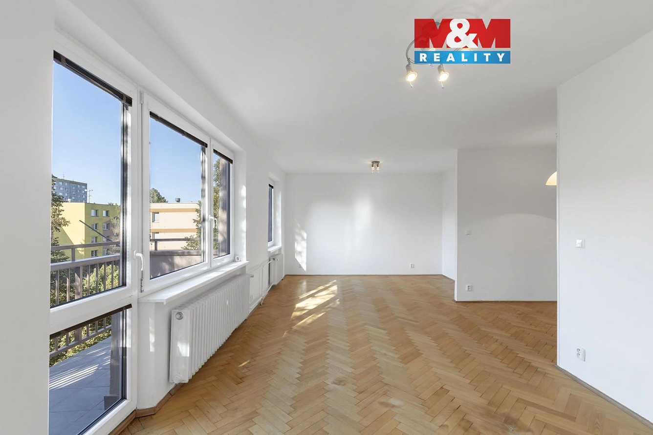 Exkluzivně nabízíme k prodeji prostorný a slunný byt 4+1 o výměře 87 m2, s balkónem a garáží v domě. Nachází se na Staňkově ulici, v těsné blízkosti lesoparku, umožňující různé sportovní aktivity nebo třeba jen rekreační procházky. Byt samotný je vybaven kvalitními bezpečnostními dveřmi, za kterými se nachází předsíň, se vstupem do praktické šatny, dále pak do dvou ložnic s vestavěnou skříní, do koupelny s vanou a samostatného WC s umyvadlem. Spojením obývacího pokoje a jedné z ložnic vznikl velký otevřený prostor s okny na jihozápad, který umožňuje umístit u dveří z kuchyně jídelní stůl, část prostorného obývacího pokoje se vstupem na balkón pak může sloužit jako pracovna. Samozřejmostí je možnost znovu rozdělení tohoto prostoru na obývací pokoj a třetí ložnici. Celý byt je po starší rekonstrukci, má již nově zhotovené rozvody elektřiny a vody. K bytu patří prostřední garážové stání, které je vybaveno elektricky ovládanými vraty.