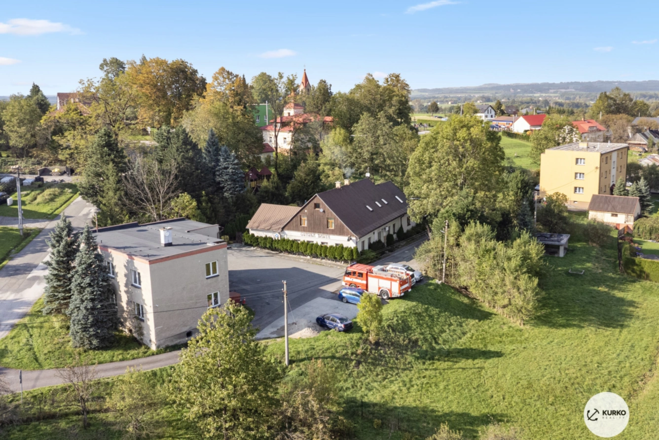Dispozice objektu je navržena pro společenské a ubytovací využití. Najdeme zde prostorný sál s pódiem a krbem pro cca 45 osob, restauraci s kapacitou 50 míst a útulný salónek pro dalších 15 hostů. V patře je pět dvoulůžkových pokojů s internetem, které poskytují pohodlné zázemí pro hosty. Budova je napojena na obecní vodovod, odpad je řešen septikem, elektroinstalace je v mědi, střecha plechová, okna částečně plastová a vytápění je řešeno tuhými palivy. Součástí nemovitosti je také rozsáhlý pozemek o výměře 3 170 m², který nabízí další možnosti využití i dostatek prostoru pro zázemí hostů. Nemovitost je provozuschopná, nicméně pro moderní standard si vyžádá určité úpravy, což zároveň otevírá prostor k individuálnímu přetvoření dle vlastních představ.