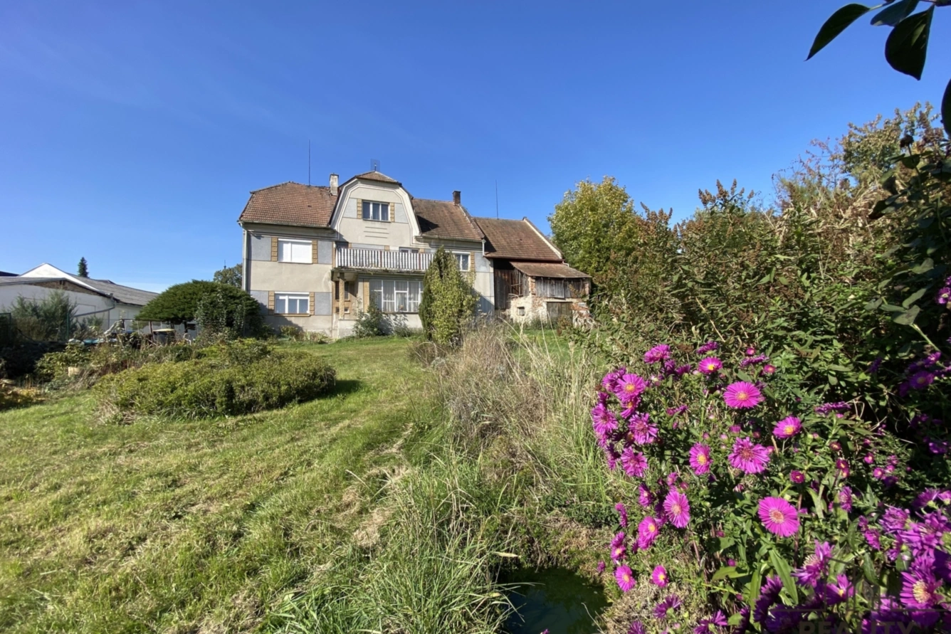 Dům leží na rovinatém pozemku o celkové výměře 3.173 m2. Na přední zahradě jsou postaveny dvě garáže, tyto garáže jsou částečně podsklepené. Je zde možnost parkování pro více aut. Zadní zahrada je využívána k rekreaci, pěstování zeleniny, květin a ovocných stromů. Na dům navazuje prostorná stodola.