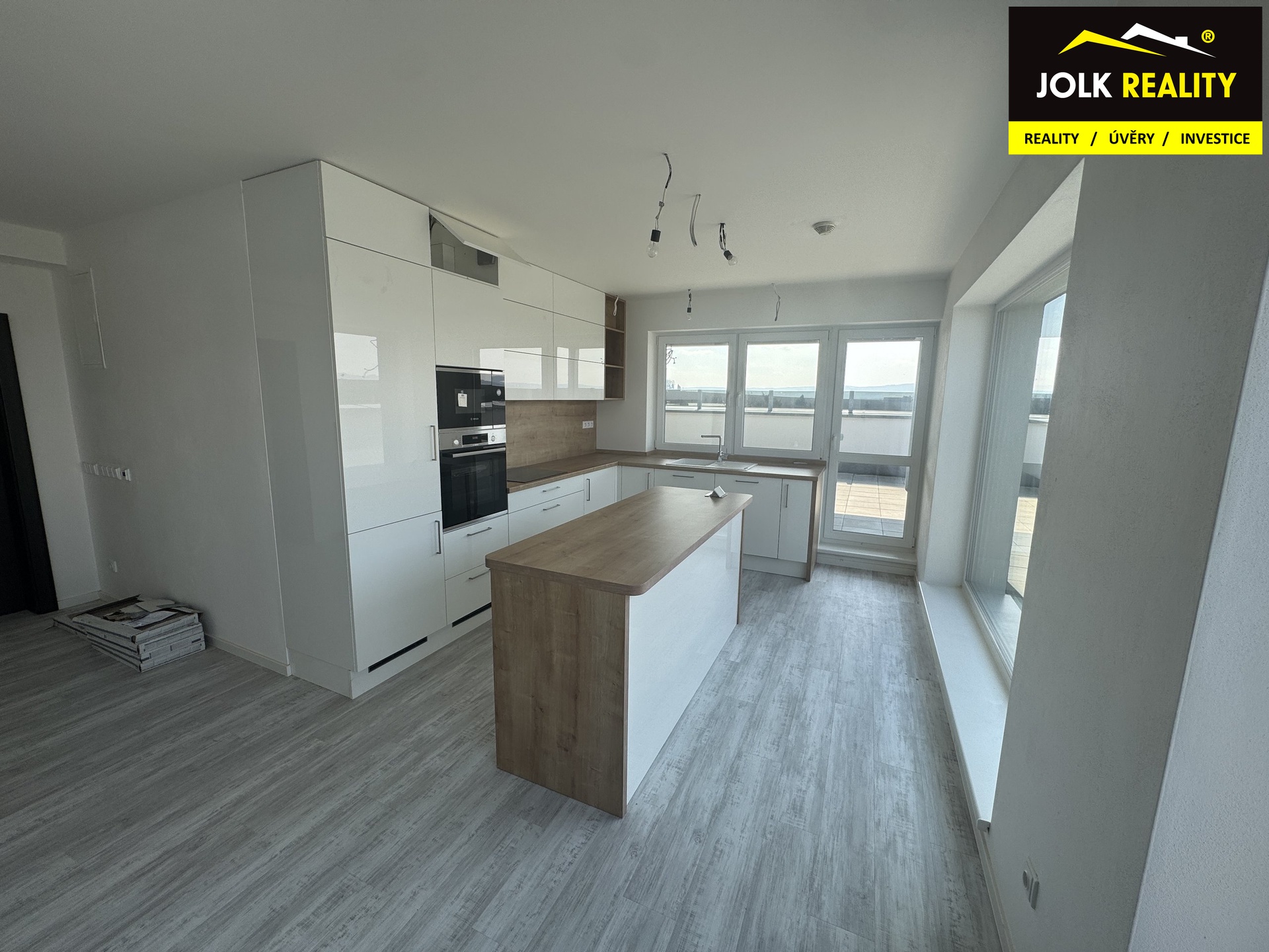 Dispozice bytu nabízí prostorný obývací pokoj propojený s kuchyňskou částí bytu. Kuchyňská linka je nová nepoužitá a plně vybavená spotřebiči. Součástí bytu je vnitřní garážové stání a sklepní koje. Vytápění bytu je zajištěno komfortním podlahovým topením.