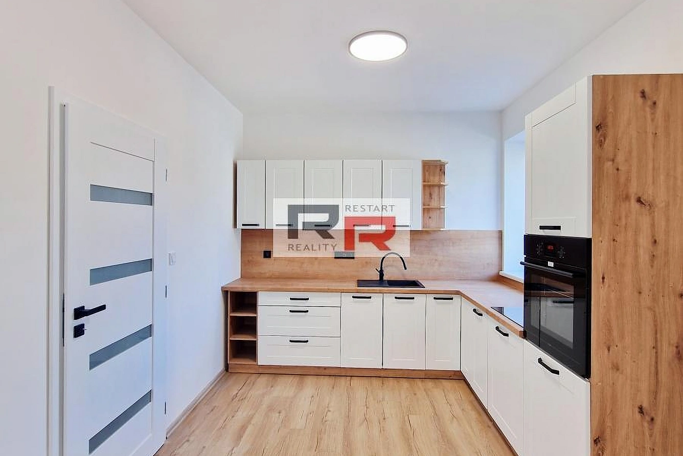 Pronájem bytu 2+KK o velikosti 75m2 s prostornou terasou o velikosti 20m2 ve Šternberku - ul. Uničovská. Jedná se o kompletně zrekonstruovaný nový byt v přízemí cihlového bytového domu s celkem 6 bytovými jednotkami. Na podlaze je vinyl. podlaha a a dlažba. Jádro je zděné se sprchovým koutem, přípojkou na pračku a wc dohromady. Ložnice je neprůchozí o velikosti 21m2 a lze případně rozdělit příčkou na dva pokoje, obývací pokoj s kuchyň. koutem je průchozí a má velikost 42m2. Z obývacího pokoje i ložnice je vstup na terasu s výhledem do zahrady. Byt se pronajímá nezařízený, k dispozici je pouze kuchyň. linka na míru včetně varné desky, trouby a digestoř.