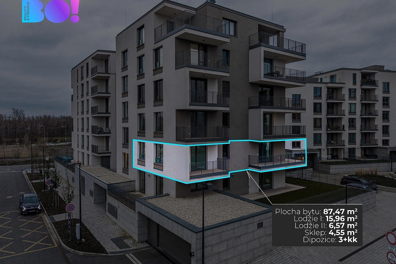 Byt o podlahové ploše 87 m² s lodžií 23 m² je šikovně dispozičně řešen tak, aby nabízel dostatek prostoru pro komfortní život.